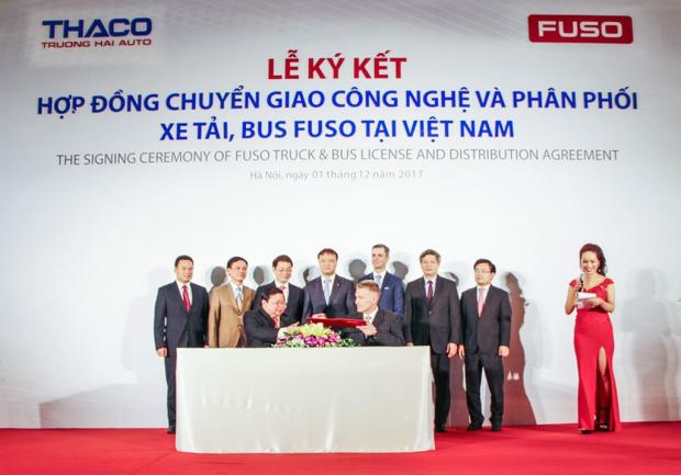 Lễ ký kết giữa công ty xe tải và xe khách Mitsubishi Fuso (MFTBC) với Trường Hải (Thaco) đã chính thức diễn ra tối 01/12/2017 tại Hà Nội. Buổi lễ có sự tham gia của ông Michael Kamper, Phó Chủ tịch Cấp cao phụ trách Kinh doanh và Tiếp thị Daimler Trucks châu Á, đại diện Fuso và ông Trần Bá Dương, Chủ tịch Hội đồng Quản trị Thaco.