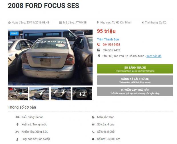 Mẫu Ford Focus 2008 đang được rao bán với giá chỉ 95 triệu đồng. Xe có số kilomet đi được 95.000 Km