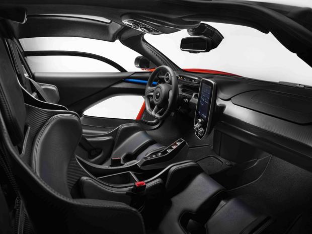 Bảng táp lô cũng được đơn giản hóa hết mức, chỉ có một màn hình cảm ứng đặt dọc và một vài nút bấm ở khu vực yên ngựa trung tâm. Mặt đồng hồ và vô lăng cũng được tối giản đến độ không còn gì có thể cắt bỏ. Chưa hết, các nút đề máy, chọn chế độ lái Race Mode, điều hòa, điều chỉnh đèn và mở cửa được đặt hết lên trần xe, ngay sau gương chiếu hậu. Bạn cũng không thể kéo kính cửa sổ xuống giống như một chiếc xe bình thường, đơn giản vì phần cửa xe … không có đủ chỗ để cả tấm kính tụt xuống. Kính cửa sổ của Senna có hai phần, phần trên cố định và phần dưới có thể trượt mở, có lẽ cũng chỉ vừa đủ để chủ xe thò tay ra mua một chiếc hamburger.