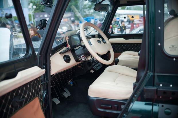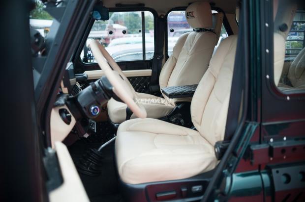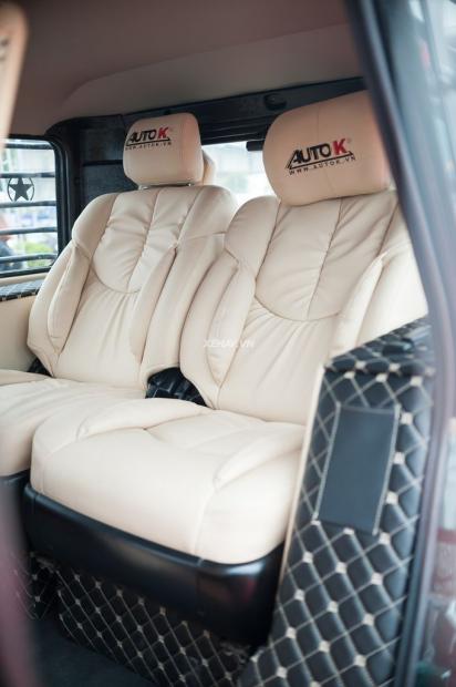Hai hàng ghế nguyên bản chỉnh cơ và giả da đã được thay thế bằng ghế bọc da điều chỉnh điện. Đồng thời nội thất màu trắng kem giúp chiếc xe lột xác với vẻ sang chảnh.