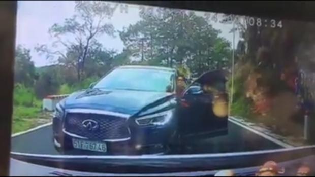 Sự việc xảy ra vào khoảng 9h10 sáng 24/12 trên đường đèo tại Đà Lạt, Lâm Đồng. Clip do camera hành trình ghi lại cho thấy tài xế chiếc Infiniti vượt ẩu, lấn trọn làn bên cạnh tại khúc cua trên đoạn đèo nườm nượp phương tiện. Dù là người chạy sai nhưng tài xế này vẫn mở cửa xe, chỉ tay mắng tài xế ô tô gắn camera hành trình.