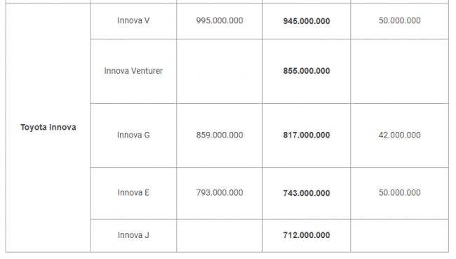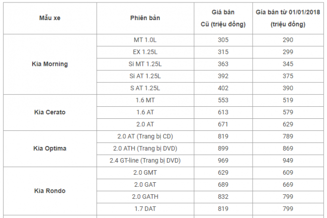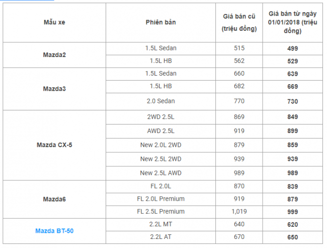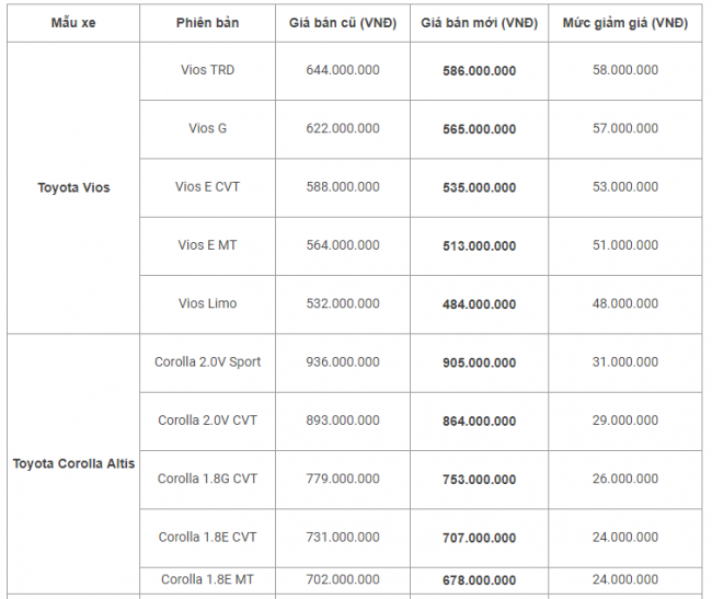 Bảng giá xe Toyota, Mazda, Kia và Hyundai mới nhất
