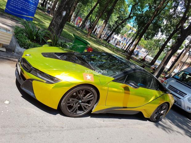 Đầu năm 2018, chiếc i8 này đã được chủ xe dán lại màu vàng chrome bắt mắt, với một số chi tiết nguyên bản màu đen. Được biết, chi phí dán toàn bộ cho một chiếc xe tốn kém khoảng 15-20 triệu tùy chất liệu. Phương pháp này được dân chơi xe khá ưa chuộng vì dễ dàng đổi màu cho xe mà không làm ảnh hưởng đến lớp sơn nguyên bản.