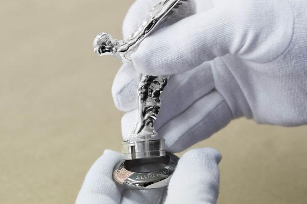 Biểu tượng Spirit of Ecstasy trên đỉnh nắp ca-pô của Silver Ghost Collection được làm từ bạc nguyên chất, với phần chân gắn được làm từ đồng mạ vàng, đặt ngay trên tấm lưới tản nhiệt màu đen.