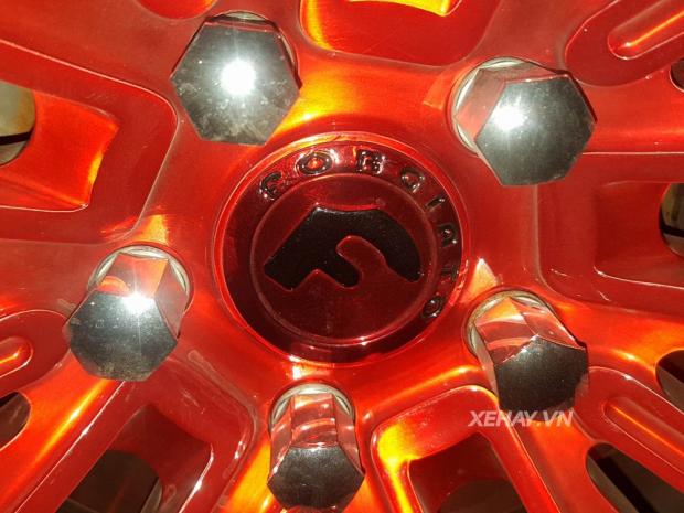 Chiếc xe trong bài được chủ nhân thay cho bộ mâm đa chấu màu đỏ của Forgiato trông khá lạ mắt.