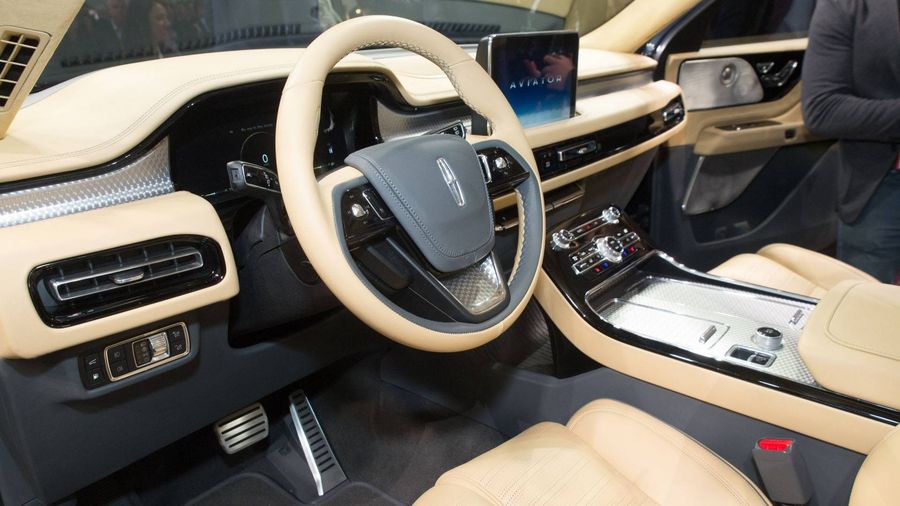 Đối với nội thất, khoang cabin cao cấp của Lincoln Aviator concept được hoàn thiện với da bọc đục lỗ cao cấp, sự hòa trộn hoàn hảo giữa hai tông màu be Shearling và ghi Lunar, tính sang trọng của chiếc SUV được gia tăng với các điểm nhấn sơn đen bóng.