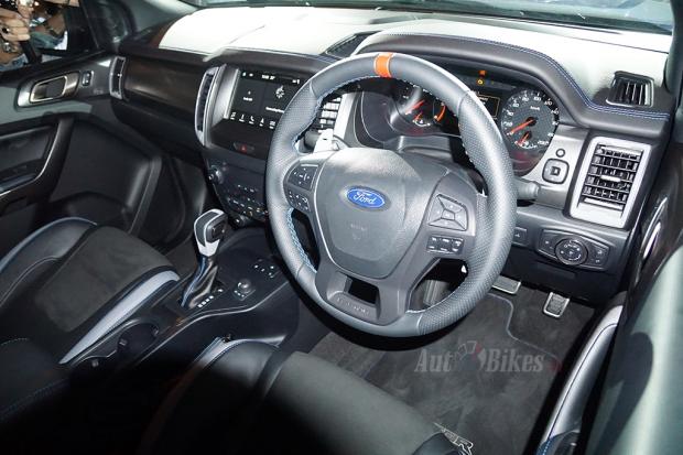 Ranger sẽ được trang bị động cơ diesel Bi-Turbo 2.0L cho công suất 213 mã lực và mô men xoắn 500Nm đì kèm hộp số tự động 10 cấp. Nội thất của Ranger Raptor sẽ bao gồm vô lăng với một dấu đỏ chính giữa để điều khiển ở vận tốc cao được dễ dàng hơn. Cần số được đúc bằng magiê, ghế ngồi bọc da Alcantara có kích thước lớn hơn giúp thoải mái khi di chuyển offroad hoặc tốc độ cao.