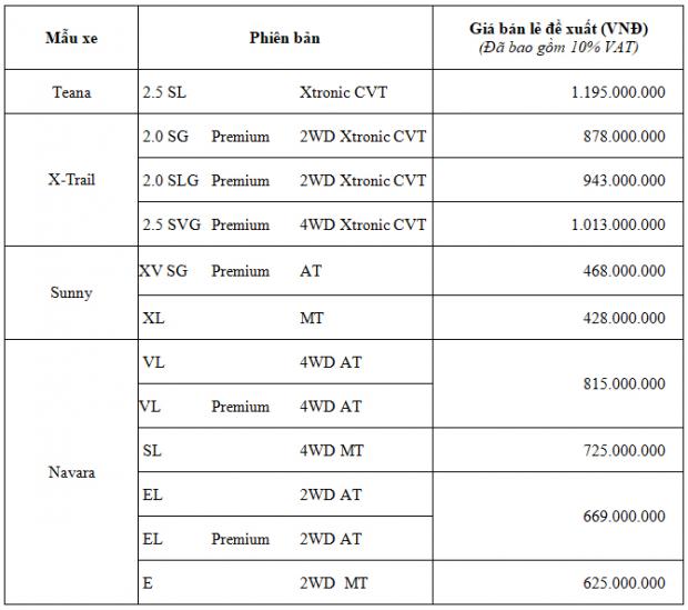 Chi tiết giá bán lẻ đề xuất các mẫu xe của Nissan tại Việt Nam: