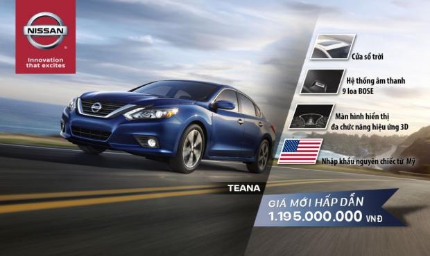 Sau đợt điều chỉnh giá bán lẻ trong tháng 3 năm 2018, giá của Teana hiện đang ở mức 1.195.000 đồng - giảm gần 300 triệu so với giá bán tại thời điểm ra mắt giúp Teana tăng tính cạnh tranh so với các xe trong cùng phân khúc Sedan D. Cụ thể Nissan Teana rẻ hơn 107 triệu đồng so với Toyota Camry 2.5 Q được lắp tại Việt Nam và thấp hơn 8 triệu so với Honda Accord 2.4 được nhập từ Thái Lan. Đối với một chiếc xe nhập khẩu Mỹ được trang bị nhiều tính năng thì đây là mức giá vô cùng hấp dẫn.