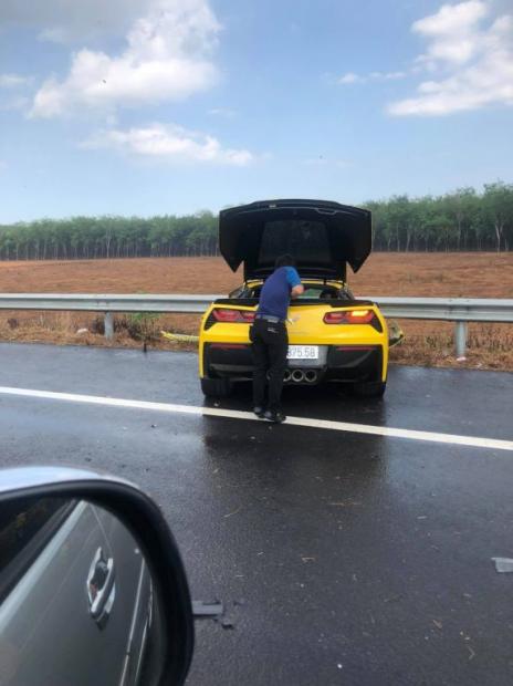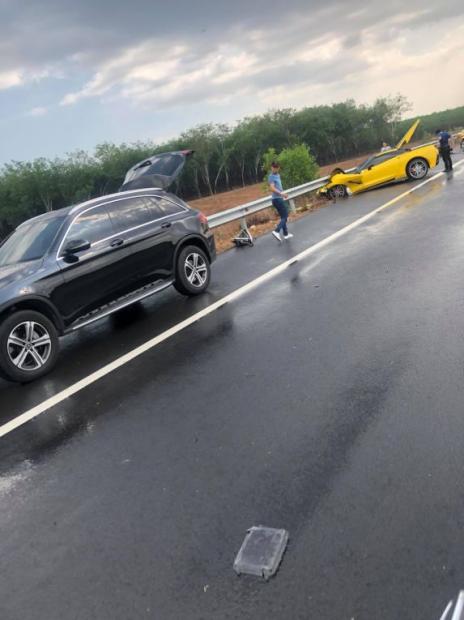 Chiếc Chevrolet Corvette C7 gặp tai nạn này thuộc sở hữu của một vị đại gia Sài thành. Trên đường di chuyển do gặp trời mưa, đường trơn nên xe đã không may mắn đâm vào giải phân cách bên đường khiến phần đầu xe bị hư hỏng nặng nề.