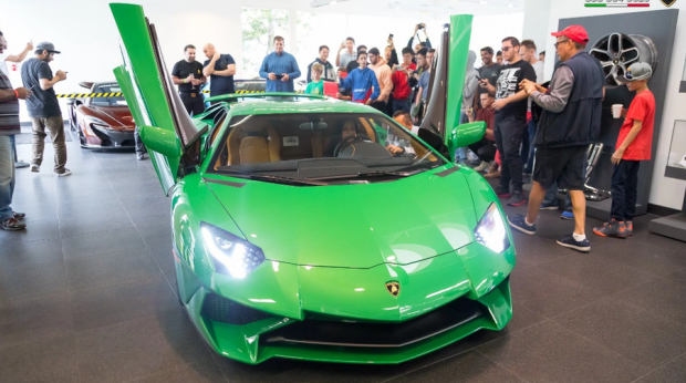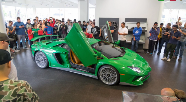 Sản phẩm này thuộc về bộ phận cá nhân hóa Ad Personam của Lamborghini, chiếc Aventador SV đặc biệt sở hữu bộ cánh màu xanh lục bắt mắt và hai bên sườn sơn bạc.