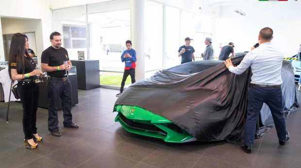 Không giống như hầu hết những mẫu SV khác được xây dựng với phần lớn các bộ phận sợi carbon ở bên ngoài lẫn bên trong, siêu xe này lại gây ấn tượng với một thân xe sơn xanh trọn vẹn, các chi tiết như cửa hút khí, thanh cản trước, bộ chia gió phía trước và cánh lướt gió phía sau đều chia sẻ chung màu xanh lục như phần còn lại của thân xe.