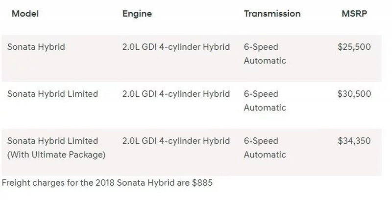 Hyundai đã chính thức công bố Sonata Hybrid 2018 sẽ có giá bán khởi điểm từ 26.385 USD (~ 600 triệu VNĐ), rẻ hơn 500 USD (~ 11,3 triệu VNĐ) so với mẫu xe năm 2017.