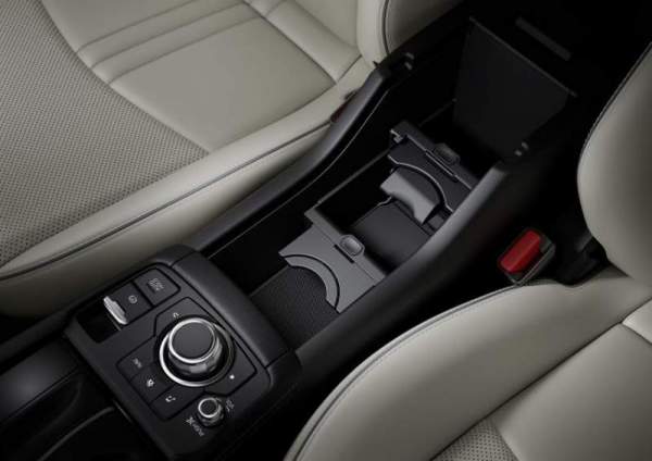 Bộ đòn bẩy phanh tay trước đây trên CX-3 cũng đã được xóa sổ để nhường chỗ cho hệ thống phanh tay điện tử, điều này không chỉ giúp giải phóng không gian lưu trữ trong xe mà còn cung cấp cho người ngồi phía trước một tay vịn thoải mái hơn.