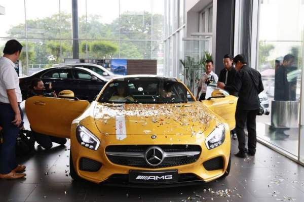 Chiếc Mercedes AMG GT S có màu vàng bắt mắt vừa được bàn giao cho khách hàng tại Sài Gòn là chiếc đầu tiên tại Việt Nam về nước vào đầu năm 2015 với giá trị sau khi hoàn tất các thủ tục để lăn bánh trên đường phố gần 10 tỷ VNĐ.