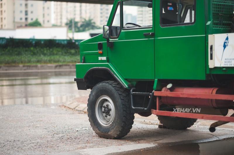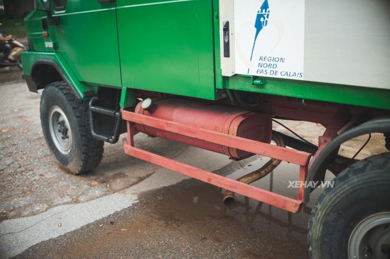 Chiếc xe đã được chế thêm dàn điều hòa với giàn lạnh đặt trên nóc xe, bộ tời và ống thở.
