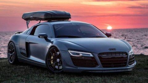 Không chỉ gây ấn tượng với bộ áo sơn màu xám mờ và thùng đồ trên mui xe, siêu xe Audi R8 này còn là chiếc cuối cùng được trang bị hộp số sàn 6 cấp.