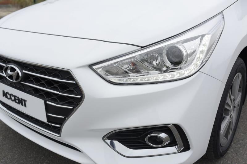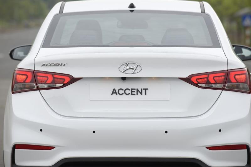 Ngoại hình Accent 2018 vẫn đi theo phong cách trẻ trung sành điệu được tạo nên bởi ngôn ngữ thiết kế 'Điêu khắc dòng chảy 2.0'. Dấu ấn của Elantra thể hiện đậm nét ở kiểu dáng tổng thể cùng lưới tản nhiệt lục giác phong cách thác nước Cascading Grill cùng cặp đường gân dập nổi kéo dài từ đầu vuốt đến cuối đuôi xe. Cặp đèn Bi-Halogen sắc xảo, đèn sương mù cũng dùng bóng projector. Đèn hậu LED 3D ấn tượng, lazang 16 inch trên bản đặc biệt tạo hình 5 chấu đơn to bản mạnh mẽ. 4 phanh đĩa sử dụng vừa tăng tính thẩm mỹ, vừa tạo hiệu quả an toàn. Những đối thủ như City hay Fiesta vẫn dùng phanh tang trống. Tổng thể của Accent là những nét thể thao xen lẫn chất thanh lịch của những mẫu xe salon hạng D.