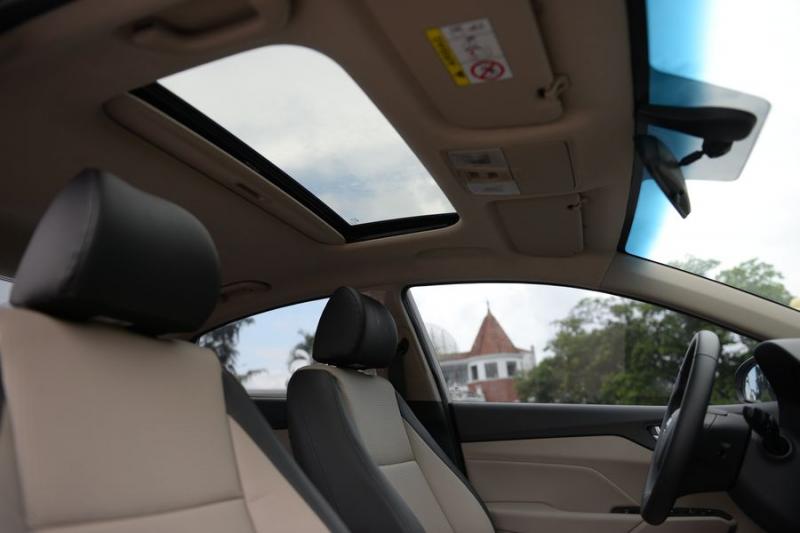 Accent 2018 cũng sở hữu cốp mở điện thông minh, tự bật mở khi người dùng cầm chìa khóa và đứng sau xe trong vòng 3 giây. Cửa sổ trời, điều hòa tự động, đèn tự động, gạt mưa tự động,… xuất hiện khiến cho những ai không quen có thể lầm tưởng đây là một mẫu xe hạng D như Camry chứ không phải xe giá rẻ hạng B.