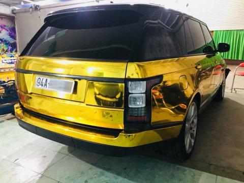 Bộ áo vàng crôm cho chiếc Range Rover này đã mang đến ngoại hình cực kỳ bắt mắt và thu hút không ít sự chú ý của người đi đường. Quá trình thực hiện thay đổi màu sơn cho chiếc SUV hạng sang của người yêu xe tại Bạc Liêu được thực hiện bằng phương pháp dán đổi màu đề-can và mất khoảng 1 ngày thi công.