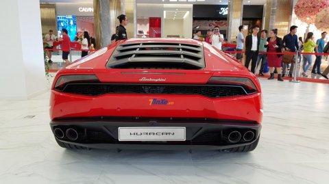 Lamborghini Huracan LP580-2 chỉ mới có 2 chiếc xuất hiện tại Việt Nam. Ngoài chiếc màu vàng óng ả đang trưng bày bên trong toà nhà cao nhất Việt Nam còn có 1 chiếc khác mang màu đỏ và đã được chủ nhân độ lại ống xả FI.