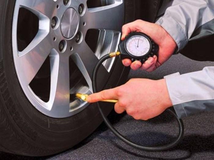 Kiểm tra áp suất lốp: Bạn nên kiểm tra áp suất lốp theo định kỳ, bao gồm cả lốp dự phòng. Nếu áp suất lốp không phù hợp thì có thể làm giảm tuổi thọ của lốp và ảnh hưởng đến khả năng điều khiển xe. Nên kiểm tra lốp sau khi xe đã đỗ lại trong vòng ít nhất 3 tiếng. Đo mức áp suất lốp và so sánh với áp suất quy định được dán trên cột cửa giữa người lái, nếu áp suất không đủ có thể làm lốp quá nóng và dẫn đến hư hỏng bên trong lốp. Đặc biệt ở tốc độ cao, lốp non hơi dẫn đến ta lông lốp bị cắt và thậm chí là nổ lốp.