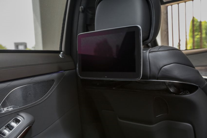 Xe còn sở hữu hệ thống âm thanh vòm 3D cao cấp Burmester 27 loa (1.590 W) với năm chế độ thiết lập, Mercedes tuyên bố hệ thống này cung cấp chất lượng âm thanh sống động nhất. Để có được điều này, bên trong lớp lót mái có đến 6 loa, cùng một sub bass siêu trầm 400 W. Ngoài ra trên xe còn có hệ thống khuếch đại giọng nói tiên tiến, giúp người lái nghe rõ giọng nói của người ngồi sau.