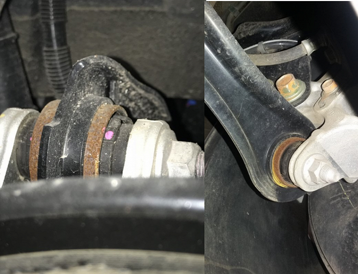 Honda CR-V 2018 bản L vừa mới đi được khoảng 2.500 km thì bất ngờ phát hiện dưới gầm xe bị gỉ sét, ở phần sắt xung quanh gioăng cao su.