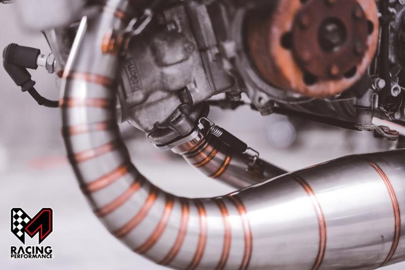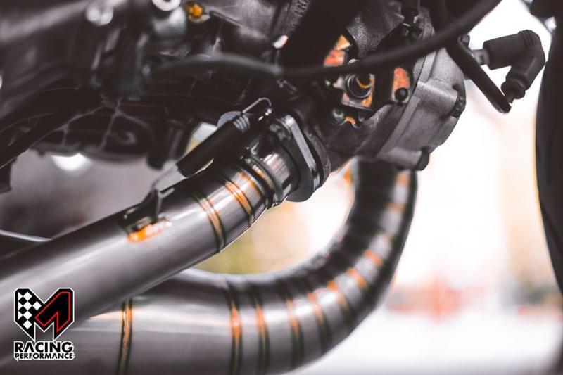 Điểm thú vị tiếp theo, nguyên bản pô của NSR 250 là loại 2-1, nghĩa là hai động cơ trên xe sẽ thoát ra chung một họng xả. Tuy nhiên, với Tyga và M-Racing, mọi chuyện đã trở nên khác biệt. Chiếc xế nổ sử dụng hai bộ pô riêng biệt với hai bụng pô tách rời, cho ra hai họng xả khác nhau, được đặt song song, cho âm thanh rời rạc, rõ ràng ở từng cú thốc ga. Và hơn hết, khi thay đổi kết cấu pô để đảm bảo lượng khí xả ra, chiếc MC21 cũng gia tăng đáng kể công suất, giúp xe bức tốc nhanh hơn, đem lại cảm giác phấn khích hơn.
