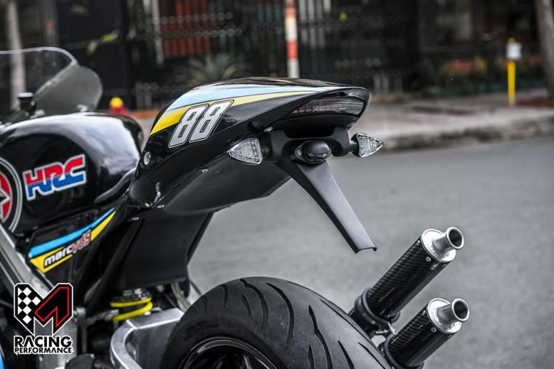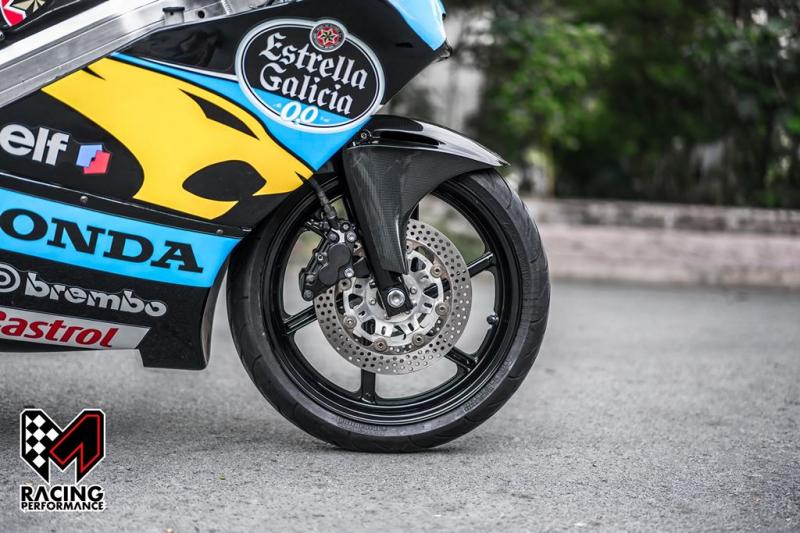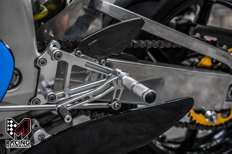 Kết hợp với đó, bộ Rear Set cũng được tăng cường bằng số gãy CNC Tyga, đẩy vị trí gác chân lùi về sau, tạo ra tư thế lái hoàn hảo cho việc chạy đua tốc độ. Chỉ tính riêng những chi tiết nhỏ này đã có thể giúp chiếc MC21 gia tăng khả năng chạy trong điều kiện cạnh tranh tốc độ.