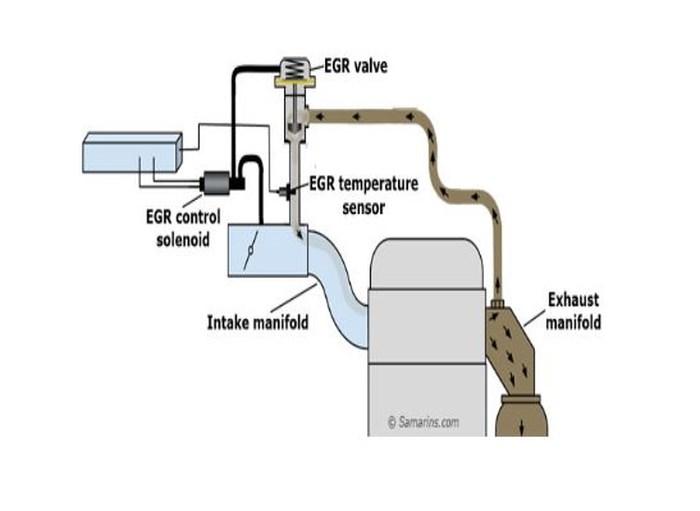 Bộ cảm biến nhiệt độ EGR thường được bố trí trên đường ống dẫn khí cháy từ EGR đến ống góp hút của động cơ.