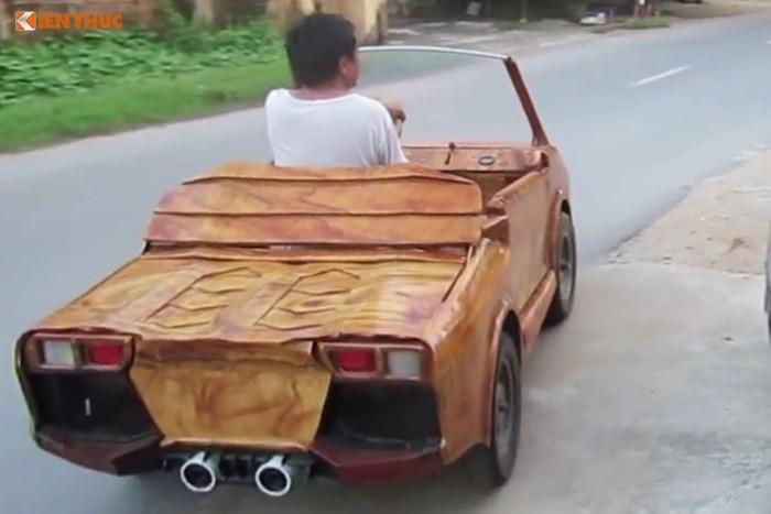 Sự xôn xao bắt đầu từ clip được một tài khoản có tên Khuat Dien đăng trên trang cộng đồng xe. Clip ghi lại cảnh một người đàn ông lái một chiếc xe được làm từ gỗ và có thiết kế khá giống siêu bò mộng Lamborghini.