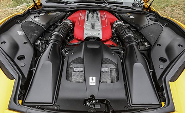Khoang động cơ của Ferrari Superfast. Ảnh: Caranddriver.