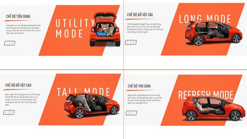 Bốn chế độ của “Magic Seat” bao gồm: Chế độ Tiện dụng; Chế độ đồ vật dài; Chế độ đồ vật cao và Chế độ thư giãn. Riêng chế độ đồ vật cao thực sự độc đáo vì đệm ngồi của ghế sau có thể dựng đứng lên 90 độ, tận dụng tối đa sàn xe và chiều cao xe, tạo không gian đủ lớn để có thể xếp được những vật cao lớn như chậu cây cảnh hay bàn ghế…