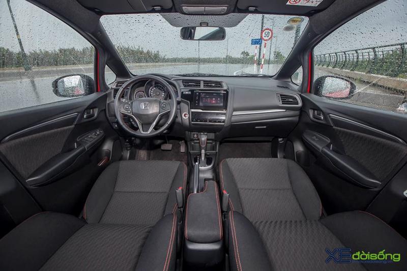 Ngoài ưu điểm xe gọn giúp việc điều khiển lái xe xoay trở dễ dàng hơn trong các điều kiện không gian chật hẹp, thì một trong những lợi điểm khác của kiểu thân xe hatchback của Jazz so với kiểu sedan của City là không gian nội thất xe rộng thoáng hơn. Có thể cảm nhận rất rõ điều này khi vừa bước vào trong khoang chiếc Jazz RS. Hai điểm dễ nhận biết được là phần kính chắn gió của Jazz được đẩy về phía trước một chút khiến khoảng không phía trước người lái thoáng hơn, và điểm thứ hai là khoảng không trên đầu của hàng ghế sau cao và rộng hơn đáng kể nếu so với City.