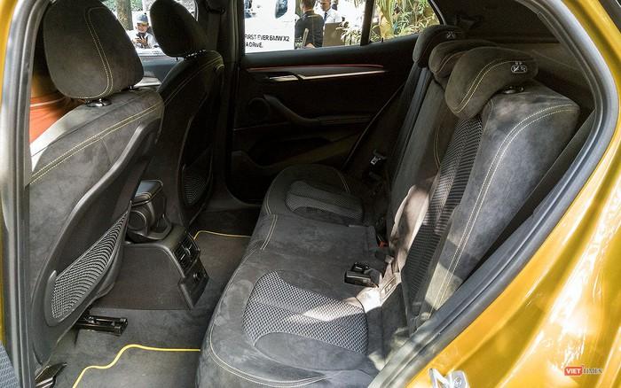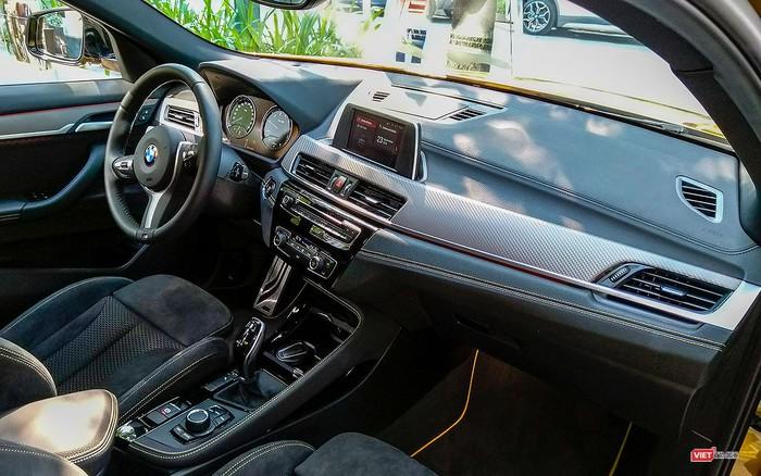 BMW X2 được trang bị nội thất ghế da Alcantara pha nỉ, chỉnh điện và nhớ 2 vị trí, điều hòa tự động 2 vùng độc lập, màn hình trung tâm không cảm ứng và được điều chỉnh qua tổ hợp núm xoay ở phía dưới. Cửa sổ trời là trang bị tùy chọn.