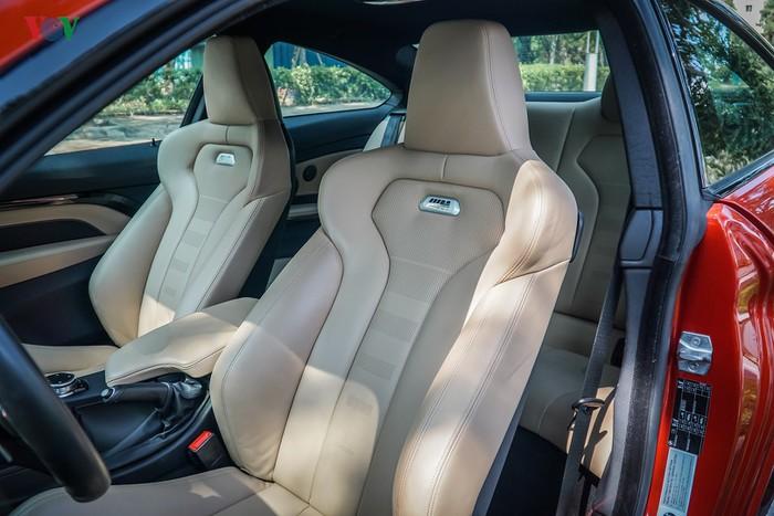 Xe có thiết kế chỗ ngồi dạng 2+2, ghế thể thao được bọc da màu kem.