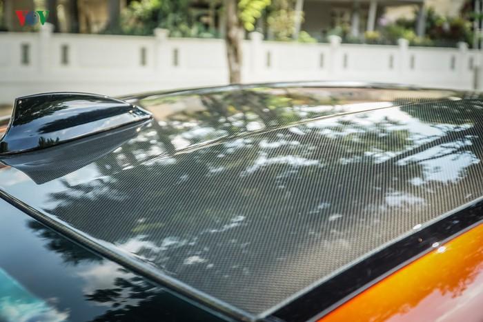 Phần mui xe được làm bằng carbon nhằm giảm trọng lượng.