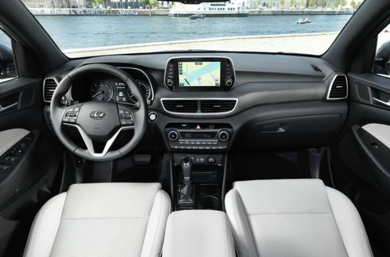 Bảng táp-lô của Tucson mới được thiết kế theo phong cách giống với những gì mà Hyundai Santa Fe thế hệ thứ tư đang có, vẫn là kiến trúc đường cong kép và một màn hình cảm ứng trung tâm nổi trên đỉnh, bên dưới là các cửa gió điều hòa đặt hàng - ở thế hệ cũ, các cửa gió này nằm cùng hàng với bảng điều khiển trung tâm.