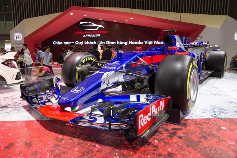 Quay lại với gian trưng bày của Honda, chiếc F1 của đội đua Scuderia Toro Rosso Honda cũng thu hút sự quan tâm.