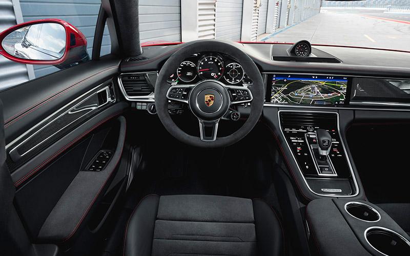 Bên trong, nội thất được bọc da cao cấp Alcantara. Ngoài ra, Porsche đã mở rộng danh mục các hệ thống hỗ trợ và tiện nghi bao gồm màn hình hiển thị trên kính chắn gió (head-up) với các tùy chọn cấu hình đa dạng áp dụng trên tất cả các phiên bản của dòng xe Panamera.