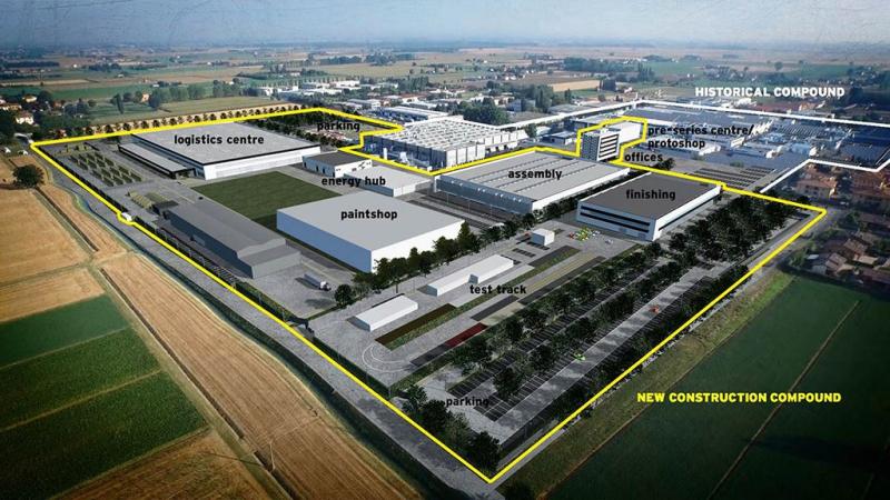 Khu vực khoanh màu vàng là phần mở rộng nhà máy của Lamborghini tại Sant's Agata Bolognese