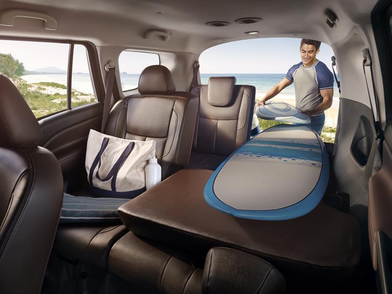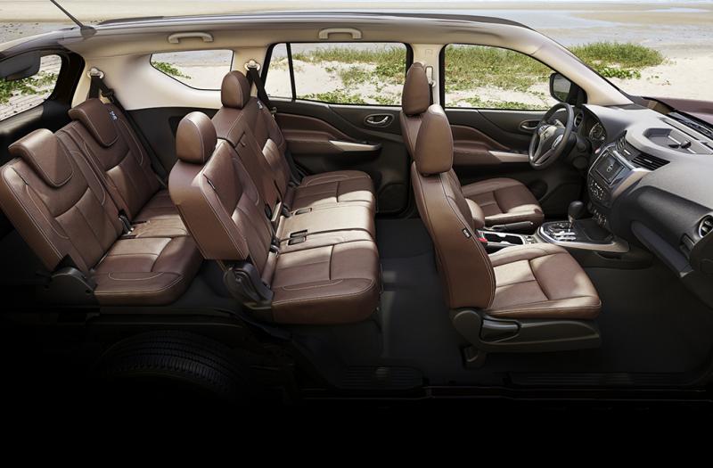 Bước vào trong Nissan Terra, hành khách sẽ được chào đón bởi một khoang cabin được thiết kế tỉ mỉ để mang lại trải nghiệm tốt nhất. Toàn bộ ghế ngồi được bọc da, ghế lái chỉnh điện 8 hướng được tạo hình để nâng đỡ xương sống tốt nhất. Hàng ghế thứ 2 có thể trượt lên xuống, ngả lưng ghế và đặc biệt là có thể gập điện chỉ bằng 1 nút bấm cạnh người lái. Hàng ghế thứ 3 cũng có thể gập theo tỷ lệ 50:50 và ngả lưng ghế. Cả hai hàng ghế sau đều có cửa gió điều hòa riêng biệt.
