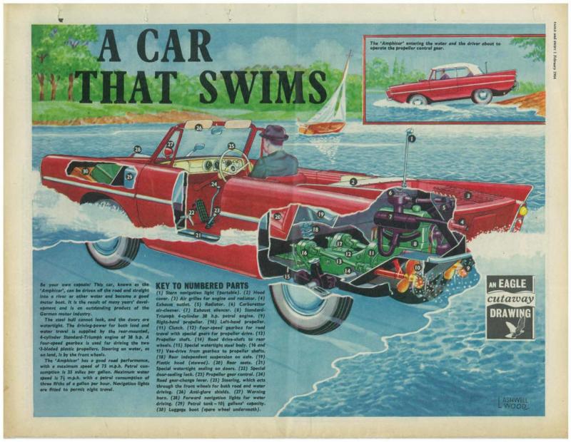 Thiết kế mô phỏng của Amphicar. Ảnh: Eaglecutawaydrawing.