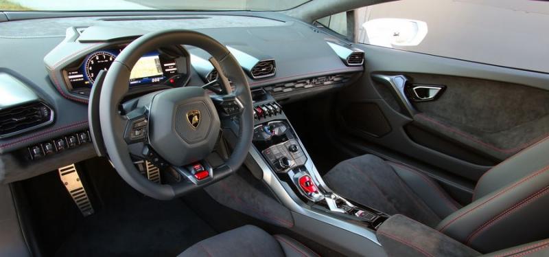 Thiết kế bên trong khoang lái vẫn mang âm hưởng của các mẫu siêu xe khác từ Lamborghini khi mọi sự tập trung đều hướng về người lái. Xe còn có điều khiển bằng cử chỉ đa ngó, Apple Car Play hay Android Auto tích hợp điện thoại thông minh hay định vị vệ tinh...Tuy nhiên, thiết kế vô lăng và cụm điều khiển trung tâm vẫn y hệt nhau. Điều này khiến không ít fan của Huracan cảm thấy có chút thất vọng.