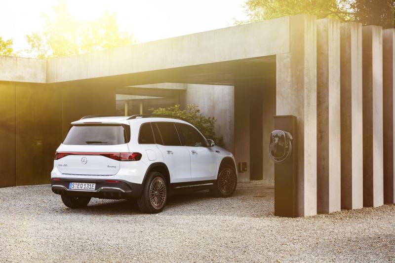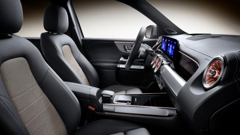 Đèn hậu của xe thay vì là 2 cụm LED tách biệt hai bên thì giờ đây được bổ sung thêm một thanh LED kéo dài ở giữa nhằm gia tăng tính nhận diện và nổi bật trong đêm. Mâm xe kích thước lớn với họa tiết đa chấu là chi tiết giúp tạo điểm nhấn từ bên hông. Nội thất của xe không có nhiều khác biệt so với GLB. Màn hình hyperscreen kích thước siêu lớn vẫn chưa được trang bị trên mẫu xe này.