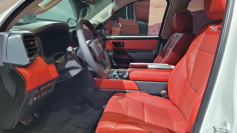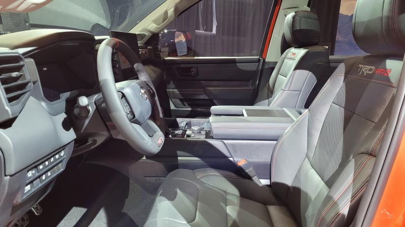 Toyota cung cấp cho người dùng một loạt các tùy chọn ghế khác nhau, từ thiết kế cho tới chất liệu. Đối với Tundra phiên bản TRD Off-Road và TRD Pro, xe còn được trang bị màn hình giúp hiển thị chướng ngại vật ở phía trước bên hông hoặc phía sau. Bên cạnh đó, xe còn được trang bị camera để mô phỏng góc nhìn 360 độ từ phía trên xuống, đồng thời cũng có thể quan sát khu vực thùng phía sau.