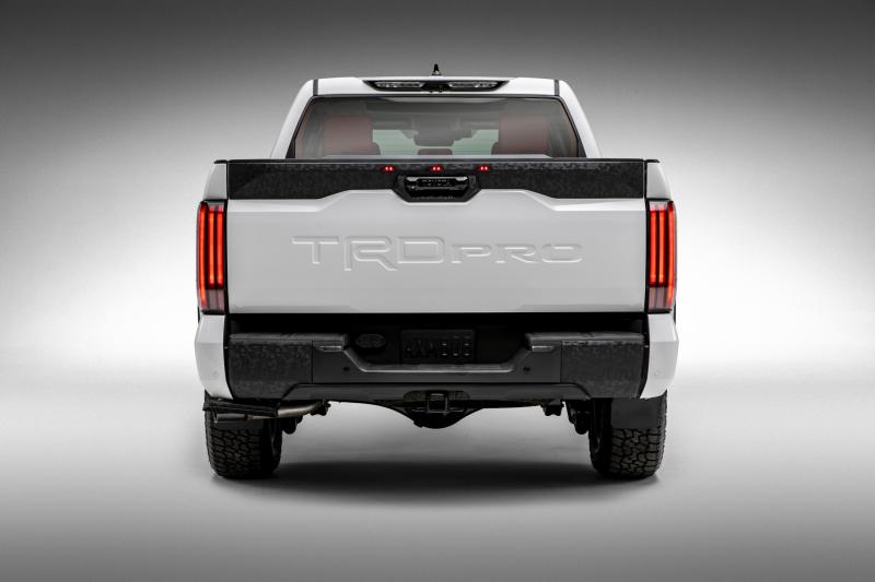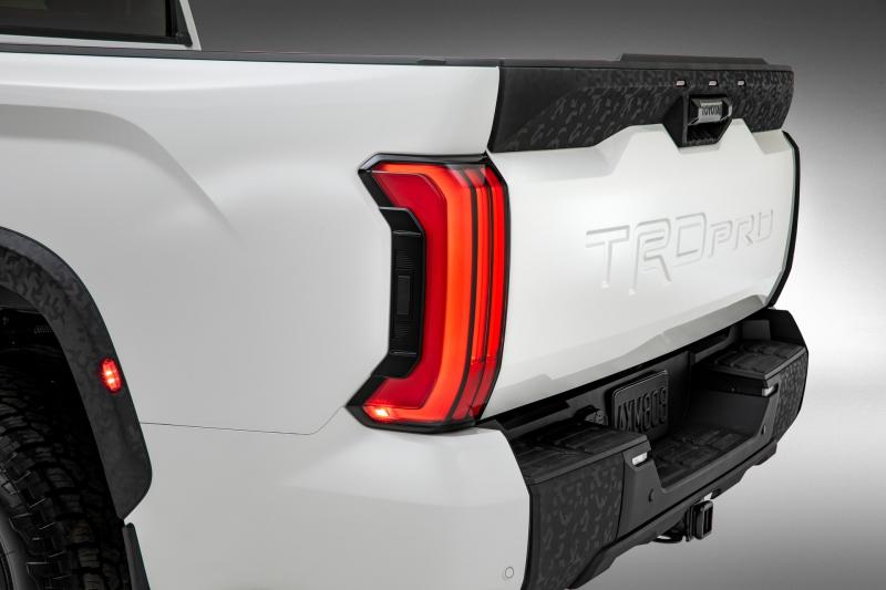 Hệ thống này giúp điều chỉnh khoảng sáng gầm xe, giúp nó đi qua các địa hình khó một cách dễ dàng hơn. Ngoài ra, treo khí nén cũng sẽ liên tục được điều chỉnh trong quá trình vận hành nhằm mang đến trải nghiệm tối ưu tùy vào điều kiện đường sá. Về thiết kế, Toyota Tundra mới ấn tượng bởi hệ thống đèn chiếu sáng phía trước sở hữu họa tiết LED ban ngày ấn tượng. Lưới tản nhiệt kích thước lớn giờ đây được trang bị họa tiết mới theo dạng tổ ong bắt mắt. Đèn hậu phía sau thùng xe cũng được thiết kế theo dạng dọc với các dải LED nổi bật.