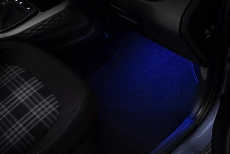 Vào bên trong, Hyundai bổ sung đèn gầm nội thất chiếu chân người dùng trên bản N Line. Bản thường có gói Purple Package mới bổ sung tông tím vào ghế bọc vải, chỉ khâu, hốc gió điều hòa, trong khi bản N Line có ốp đỏ và huy hiệu độc quyền.
