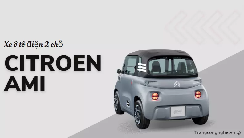 Citroen Ami là xe ô tô điện giá rẻ Trung Quốc hai chỗ ngồi, nhỏ gọn được sản xuất tại châu Âu. Xe có kích thước 2,41 x 1,39 x 1,52 m và nặng chỉ 485kg. Động cơ điện 6kW (8 mã lực), tốc độ tối đa 45km/h. Pin lithium-ion 5,5kWh cho quãng đường tối đa 75km/1 lần sạc đầy.
